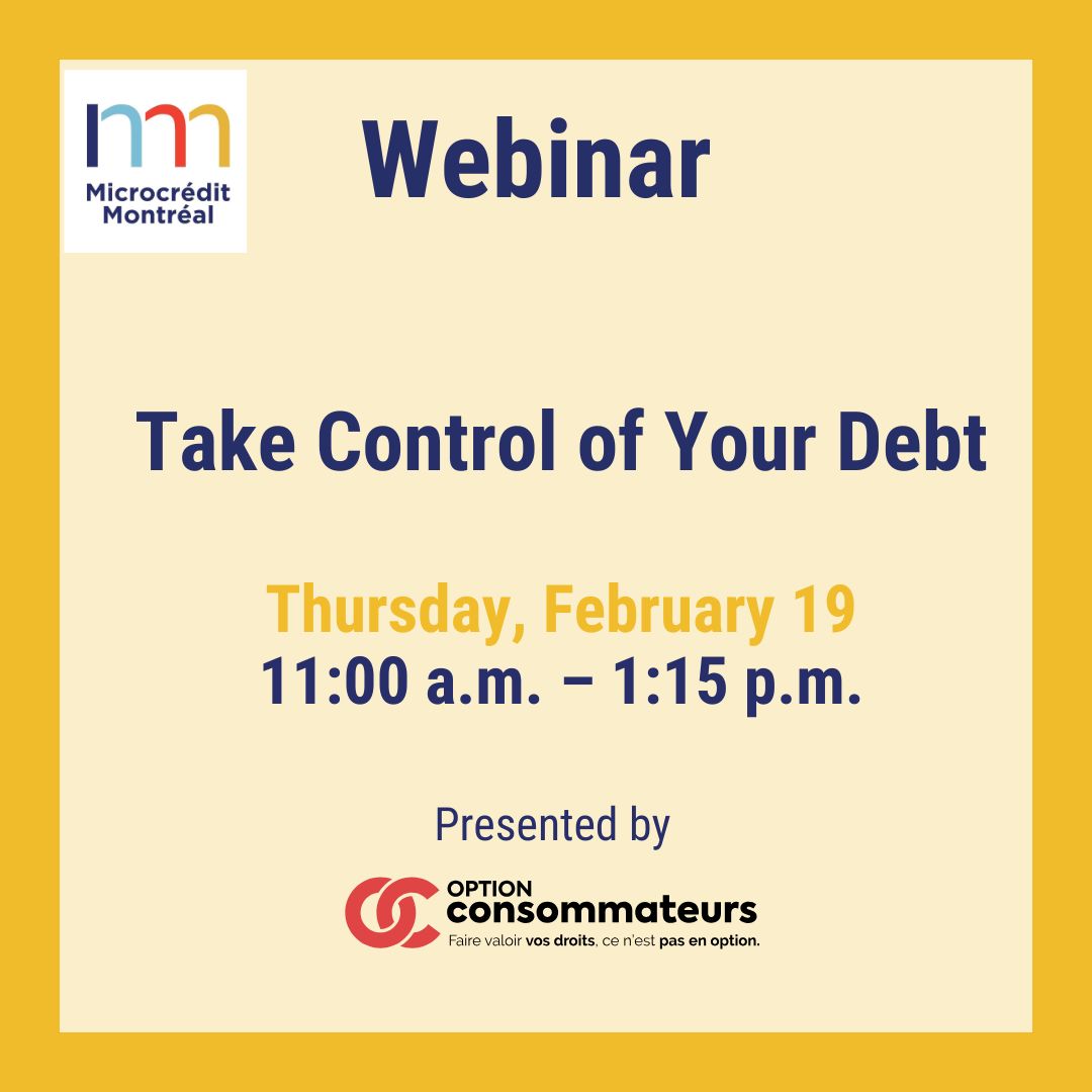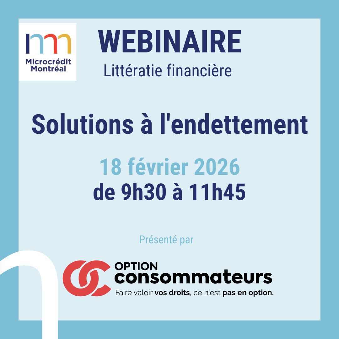Debt Solutions – Webinar Presented by Option Consommateurs February 19 From 11:00 a.m. to 1:15 p.m. Building healthy financial habits starts with the right tools. This webinar will help you better understand debt-related challenges and explore practical solutions to improve your financial situation. Topics include: • How to get out of debt • The impact […]